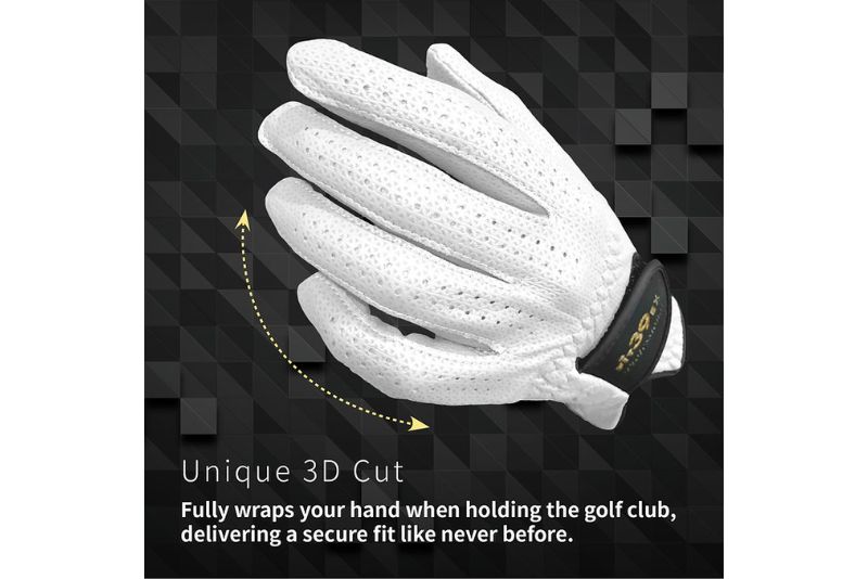 Der speziell entwickelte 3D-Schnitt sorgt dafür, dass sich der Handschuh wie eine zweite Haut anlegt. Dadurch bleibt das Griffgefühl in jeder Position konstant – egal ob beim vollen Schwung oder beim präzisen Spiel rund ums Grün.